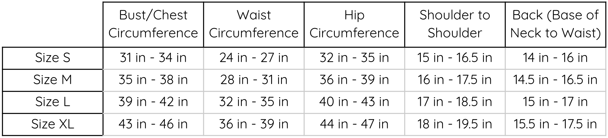 Clothing Size Charts