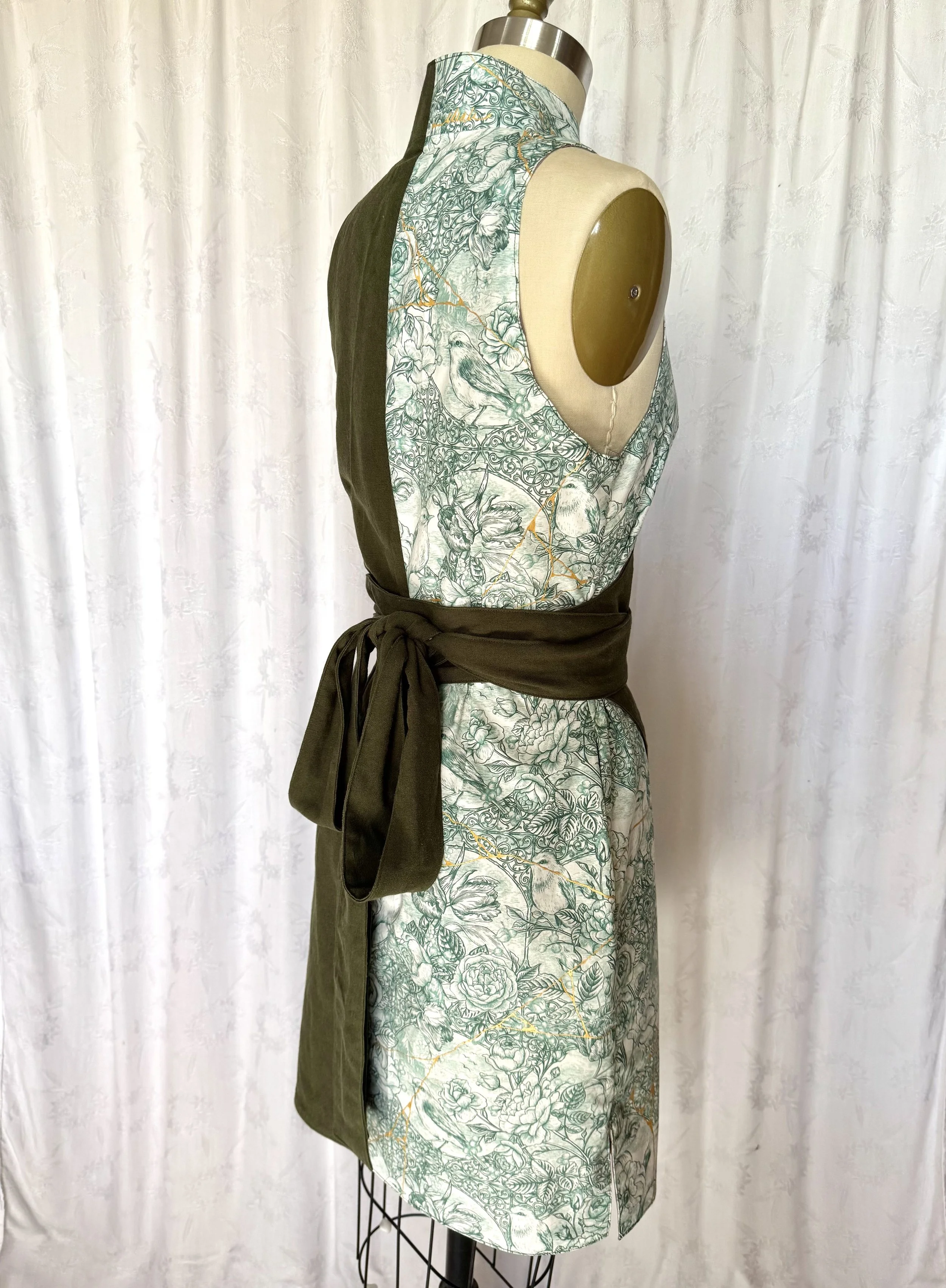 The qipao wrap dress has knee-length and ankle-length versions. This listing is knee-length. When consulting the size chart for this dress, note that the waist can be further cinched down due to the wrap design.